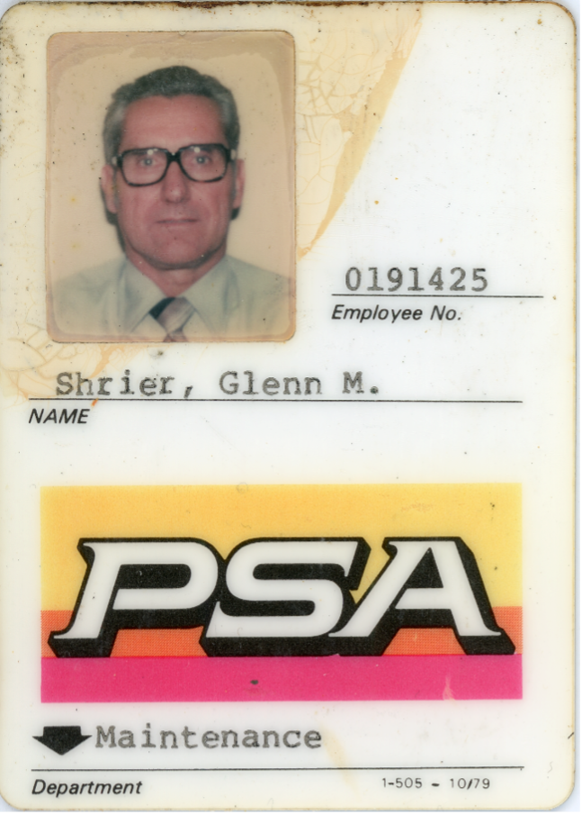 Glenn Shrier was a long time Pacific Southwest Airlines employee from the 60s-80s. He started in the maintenance department in San Diego and eventually became the Director at the San Francisco Maintenance Base. He then went on to work for US Air.