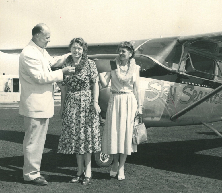 Helen Shropshire obtained her private pilot's license from Artie Clay in Monterey, California in 1956. Jack Jella was her instructor for her multi-engine instrument, commercial, and instrument ratings in l957, 1958 and 1959. Helen was inspired to get her pilot license from one of her customers. During the time Helen and her husband Frank owned the Camera Exchange in Pacific Grove, one of their customers was a very enthusiastic pilot by the name of Dell Hinn. Dell would always talk her exciting adventures in flying and was the catalyst that propelled both Helen and Frank into obtaining their private pilot licenses.