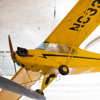Introduced in 1938, the Piper J-3 Cub, with its characteristic black lightning bolt, became an immediate success with the flying public. By 1947, when the last J-3 model was produced, a total of 14,125 had been built.