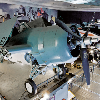The first of Grumman’s “Cats” and their first monoplane began life on the drawing board in 1935. It was the U.S. Navy’s sole carrier-based fighter at the start of World War II. A contemporary of the Japanese Zero, it performance was inferior in many respects, yet the F4F held its own because of superior armament, rugged construction, and well trained pilots.